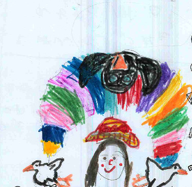 First, I created for the girls, I used crayons, watercolours, markers, and coloured pencils to show the girls' naughty thoughts and other emotions, and I waited for Lola to tell me what she was looking forward to.